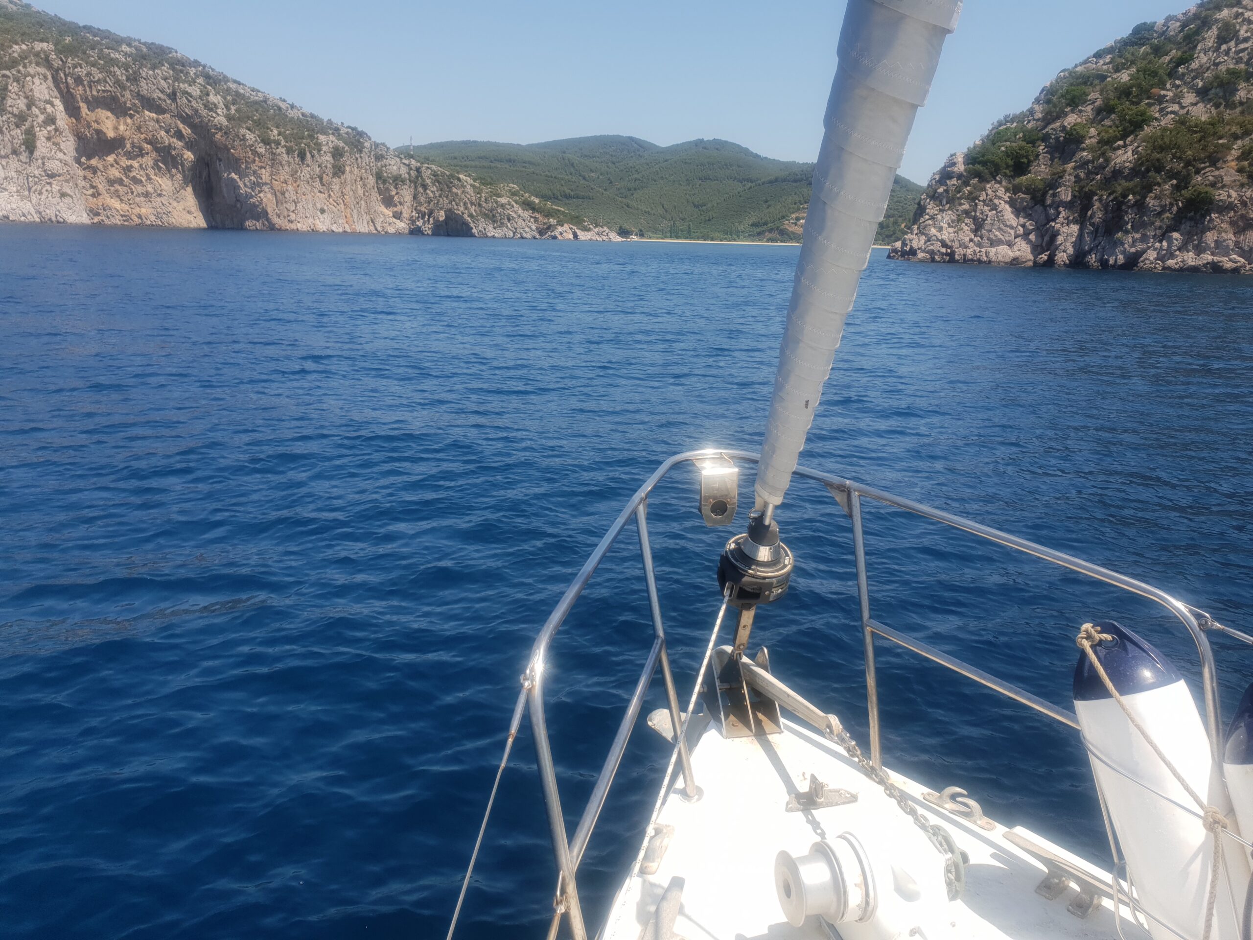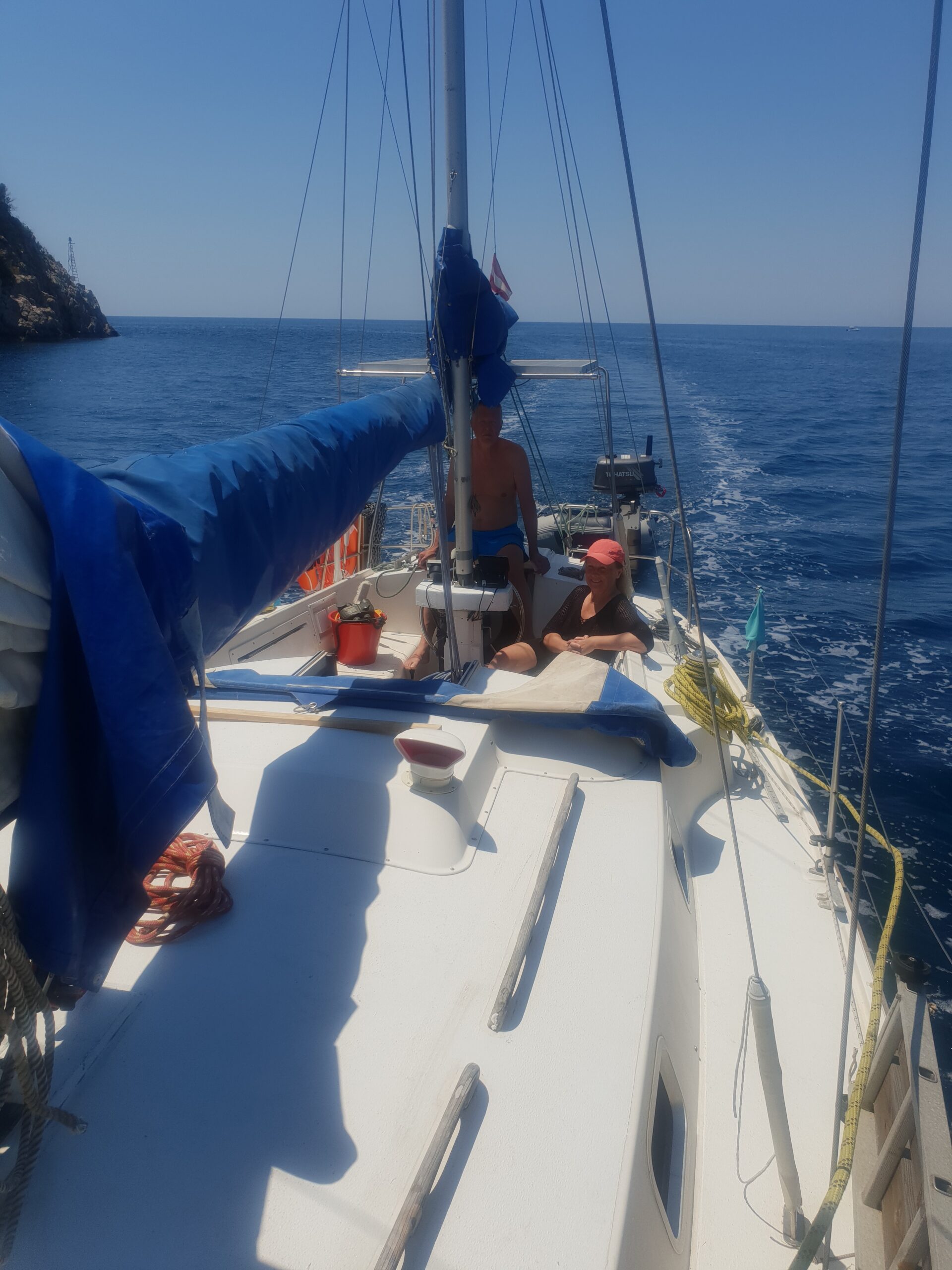Nach einer wieder sehr wackeligen Nacht und einem guten Frühstück (mit frischem Orangensaft) von Peter gemacht, fuhren wir um 11:00 los. Zuerst mit dem Dinghy zum Strand. Wegen des Gegenwindes und der Wellen, kamen wir nicht ganz trocken an. 🌊🤣
